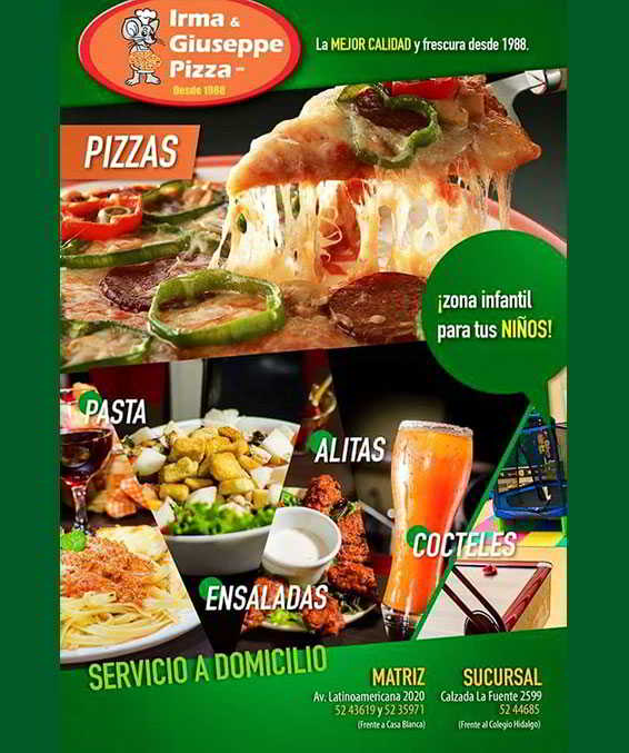 para estar al tanto de nuestras novedades y llama a IRMA & GIUSEPPE PIZZA para solicitar tus pedidos de pizza a domicilio en Uruapan , con el mejor servicio.